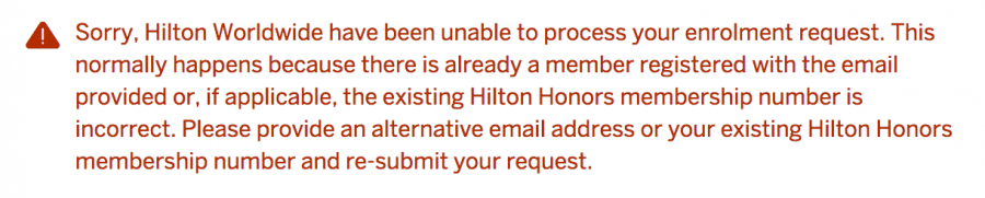 Hmm, försöker Enrol till Hilton Gold, men får följande fel, har skrivit rätt HH member number. Någon mer som fått samma problem?
