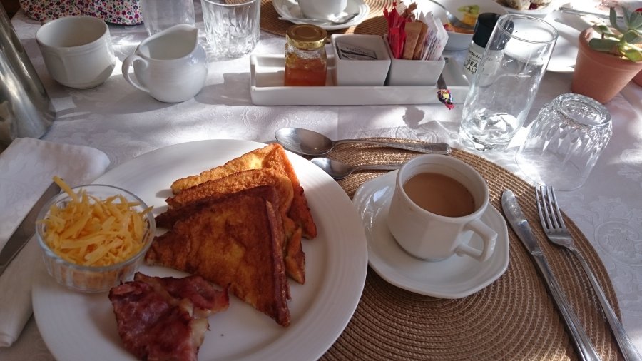 Boende på kolonialvilla i Stellenbosch. Till frukost serverades det french toast med bacon och ost, magiskt!