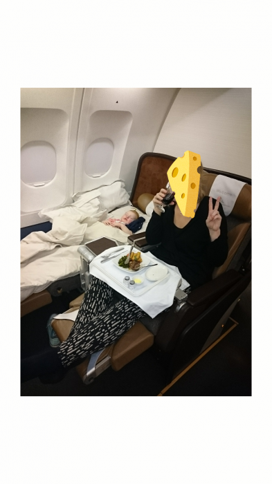 När jag frågade om det fanns chips eller snacks så fick jag världens utskällning om att det endast serverades middag och frukost på denna flygning och minsann inget annat!! Efter att ha dåsat i några timmar serverades det frukost. Ett val mellan kallskuret med ost och bröd eller omelett fanns att tillgå. Omeletten var sådär medan det kallskurna var riktigt gott. Sammanfattningsvis en väldigt bra flygning tack vare den goda middagen, den fina drycken och framförallt att dottern fick eget säte! Minus för den otrevliga flygvärdinnan och den ålderdomliga teven.