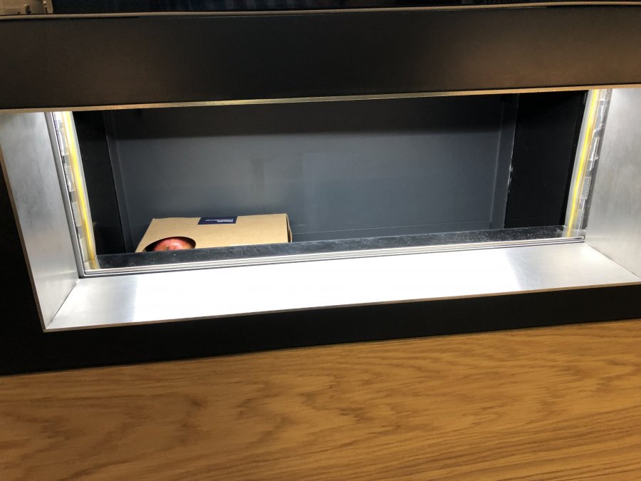 Det lilla avskärmade ”köket” med skärmar och automatiserad varuutlämning.