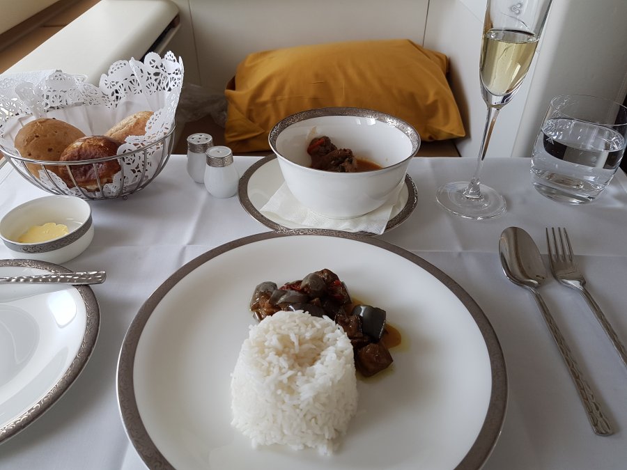 På denna flight var det tillbaka i Business som gällde, det tar ett tag att ställa om från hur det fungerar i First, snacka om lyxproblem. Blev väldigt glad över att se paeneng på menyn och denna var ju från Bangkok och var mycket bättre.