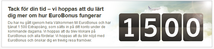 Nya medlemmar i EuroBonus erbjuds tydligen 1500p om man ser åtta filmer (ca 1 min per film). Läste om Las Vegas och hittade den här tråden: Tips om 1500p EuroBonus gratis hos SAS!