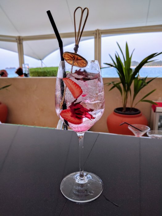 Här serveras öl, vin med och utan bubblor samt tvåkomponentsdrinkar (sprit + mixer). Personalen gick runt med tilltugg och höll glasen fyllda tills vi sa stopp! Kl 18 gjordes sista påfyllningen och vi kom sällan härifrån före 18:30 för att skynda vidare till happy hour.