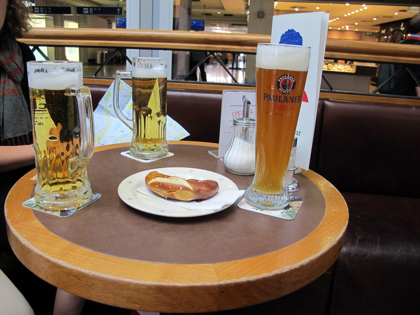 Väl framme i Frankfurt letar vi snabbt upp transferdesken, det har börjat suga rejält i öltarmen men formaliteterna måste klaras av först. Den vänliga tjejen fixar snabbt så att åtminstone två av oss får sitta tillsammans och vi styr kosan mot ett ölkafé.