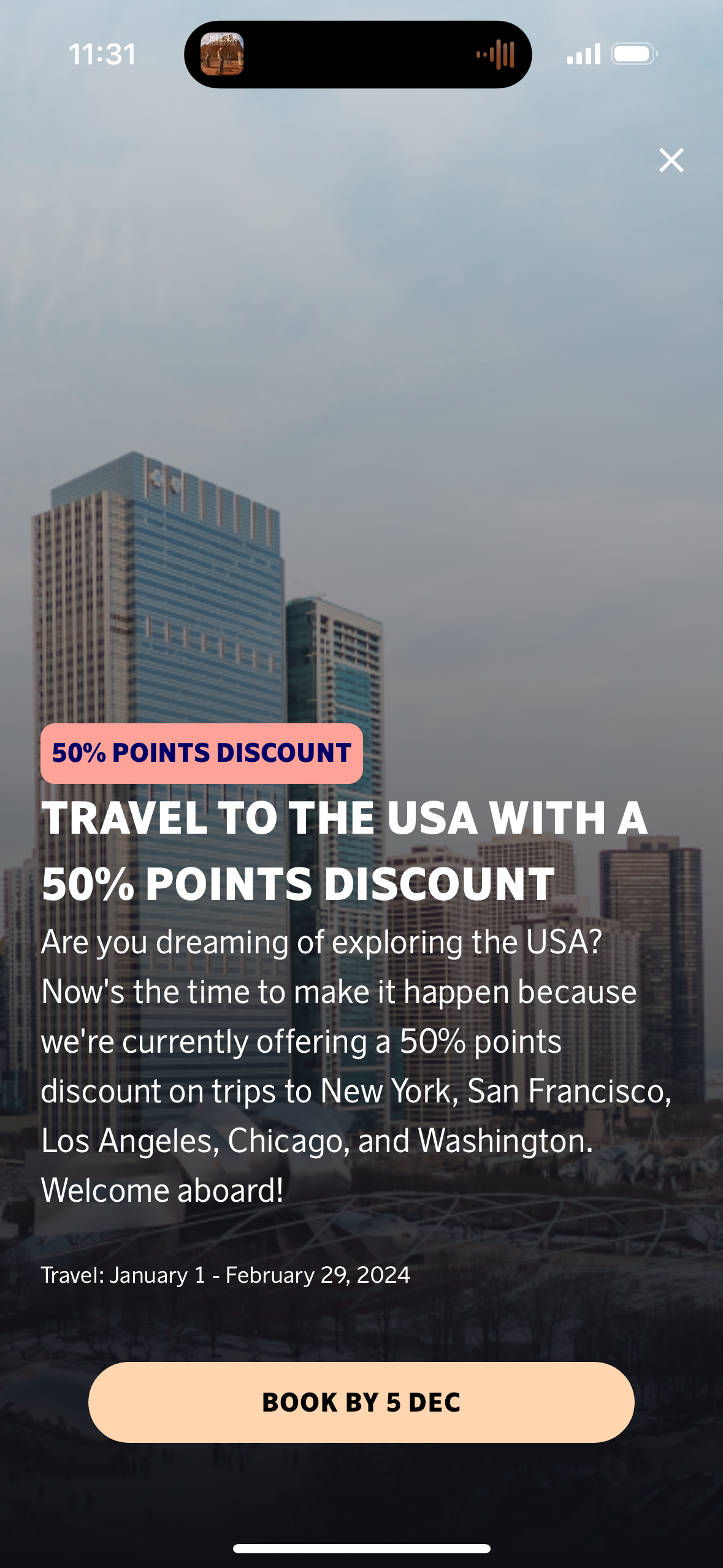 50% poängrabatt till USA 1/1-29/2 - bokas bara 5/12 2023.