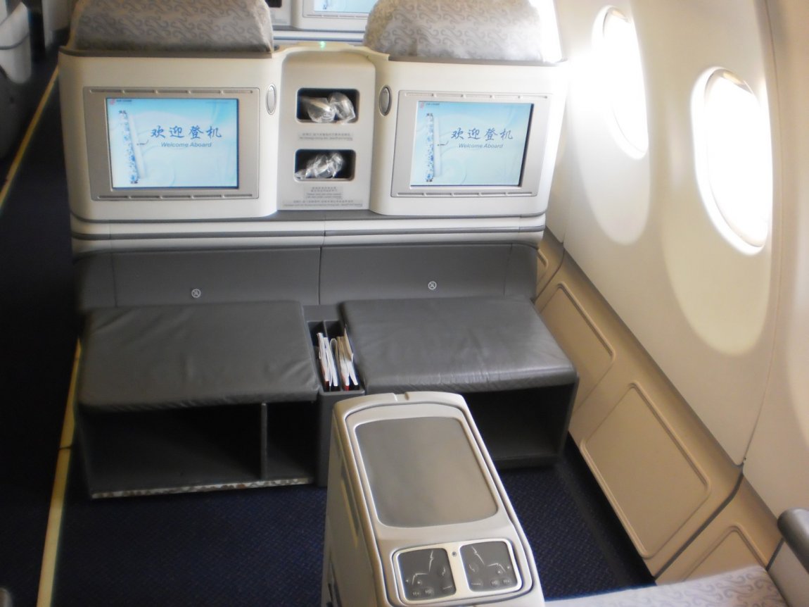 Jag har inte provat själv men jag tror att de här full-flat Business class stolarna som används på Airbus A330 till Beijing-Madrid-Sao Paulo och inte gamla Business class med lie-flat stol.