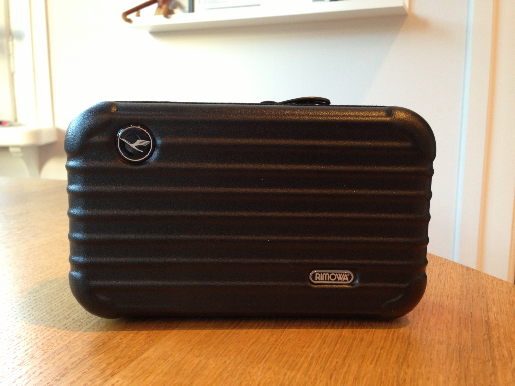 Lufthansa, tillverkad av Rimowa. Fint case i hög kvalitet, rätt så mediokert innehåll (kunde lika gärna vara ekonomiklass).