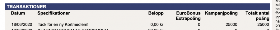 - Ditt kort måste vara anslutet till SAS EuroBonus.