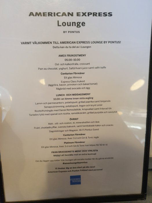 Jag var också där i fredags och drack vin. Dock stod det då på menyn att det ingick (tog bild på menyn). Jag noterar också att mimosan till frukosten för centurion har plockats bort, men de kanske får en separat meny i centuriondelen?Visa bifogad bild 89143