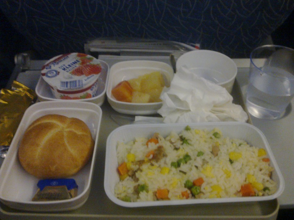 Kvällsflygning, så det bjöds på middag. Blev inget foto på själva maten, tyvärr. Tre alternativ erbjöds.