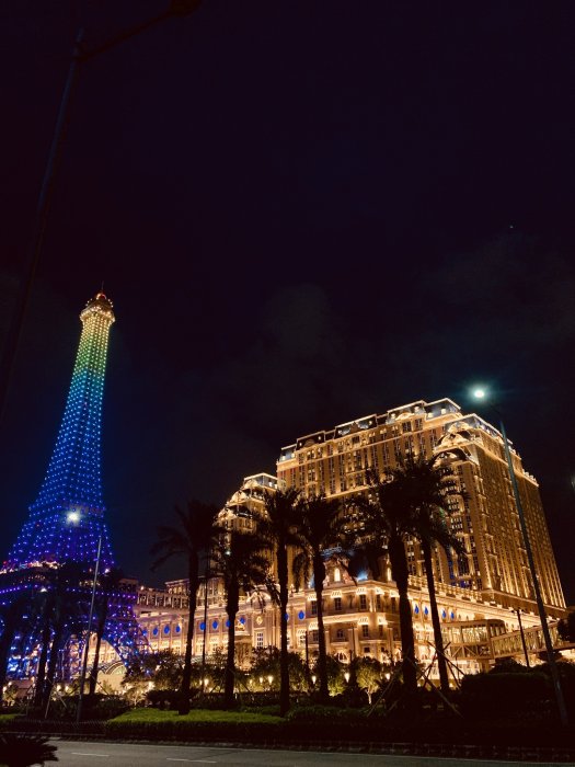Sista övernattningen i regionen överraskar jag lillasyster en sista gång; färja till Macau och incheckning på The Parisian med svit, för ca 2000:- för en natt. En mix av tacky, Disney och lyx + nästan bara gäster från mainland Kina. Det är inte allas kopp te, men sen mitt förra besök där 2017 har jag en plats i hjärtat för denna märkliga plats.