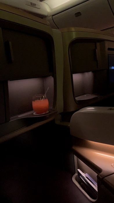 Här börjar förstås en av mina bästa stunder. Lillasyster sitter storögt på 1A med långt mycket mer space än hon behöver och försöker ta in att hon ska flyga ca 10 timmar i detta space. Välkomstdrinkar, liggande stol, servering osv. Ni fattar.