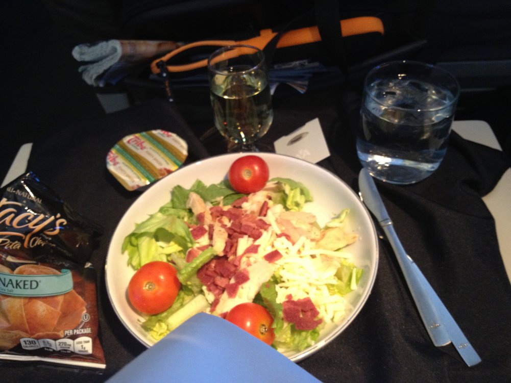 Vad med stolen? Jag får lite av NEK känslan inom Lufthansa gruppen när jag flyger med AA i F på B737-800an. Stolen är rätt tunn, sedan ”glider” man ner och framåt när man vill luta stolen, och inte rakt bakåt som ”old school” F stolar gör. Dock har den bra nackstöd för långa killar som jag. Jag tror taktiken med AA på B737-800an är att boka rad 4 på jämna och rad 5 på udda flightnummer. Då får man välja mat, något jag återkommer till strax. Överlags helt ok flight, dock är AAs kaffe sunkigaste i världen. 6/10, bra försök.