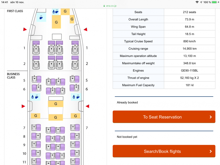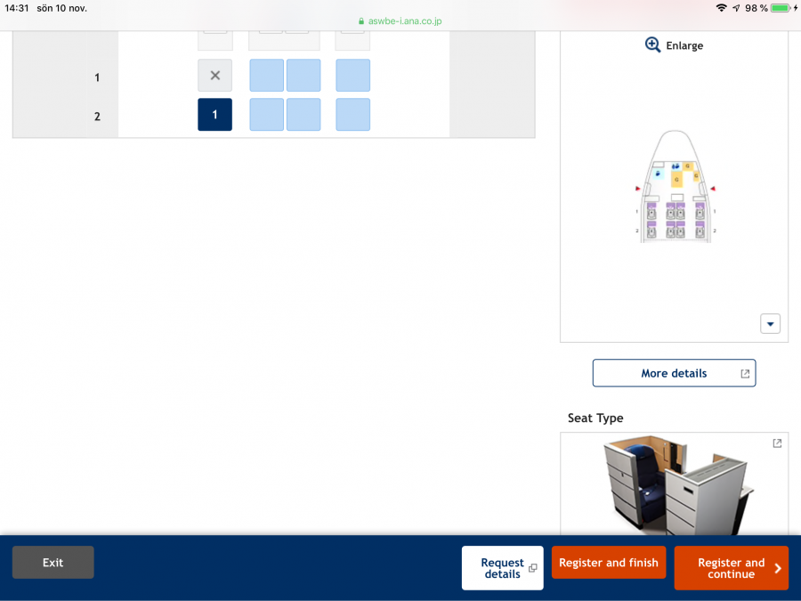 Jag vet inte vad det är för kabin, så här ser det ut där man väljer säte