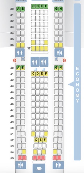 När jag jämför seatmap från sas.se med SeatGuru's ser jag stora skillnader (båda sägs vara den uppdaterade kabinen). Enl SeatGuru ska 40AB/GH vara exit row med bra benutrymme, men dessa säten finns inte på SAS's seat map. Vidare finns 37CDEF på SeatGuru men inte på SAS, och SeatGuru visar att det finns upp till rad 55 medan SAS visar bara till rad 50. Någon som vet vilken seatmap som är den korrekta?