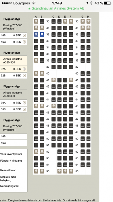 Mig veterligen är det bara hur seat map visas på Expertflyer. De rader med extra utrymme är längst fram samt vid nödutgång.En snabb undran. På bilden av de gamla A330 planen ser det ut som att det finns extra utrymme även på rad 50, men så är det väl inte eller?