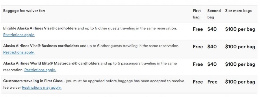 Deras sida (Checked baggage fees and policies | Alaska Airlines skriver detta: