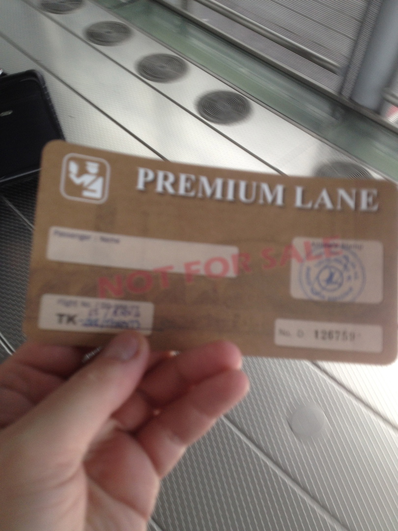 Landar i Bangkok en halvtimme sena och passerar immigration i ett nafs via Premium Lane (erhöll kort när vi klev av planet).