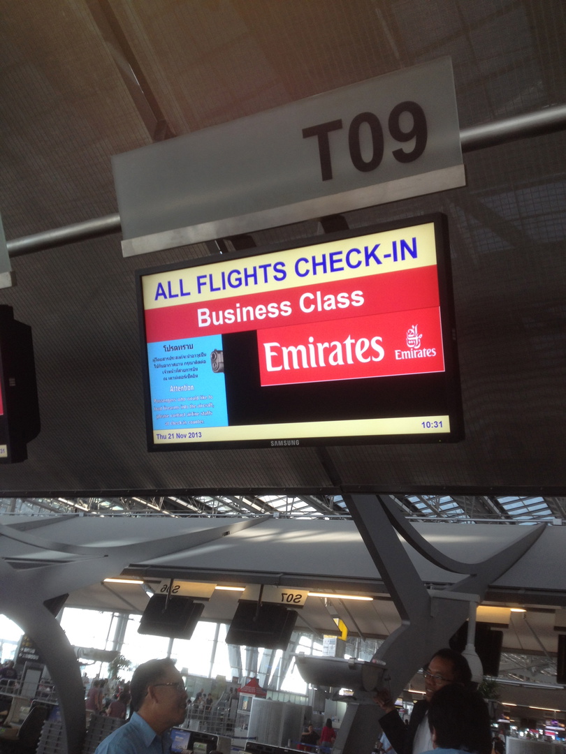 Boarding till Bangkok-flyget skedde enligt principen: säg nåt i högtalarna, öppna upp grindarna och låt alla gå på hur de vill. Vi satt nära ingången så det gjorde inget.