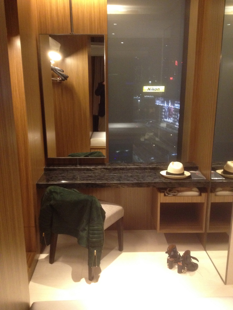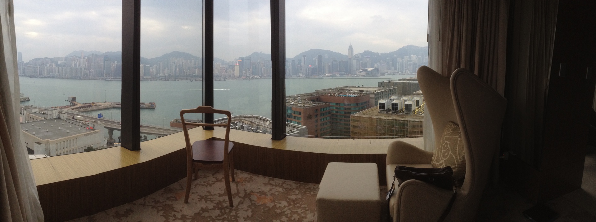 Väskorna dröjer något, men hyfsat snart sitter vi en taxi in mot stan och Shangri-La Hotel.