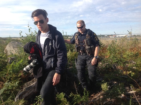 DN.SE "En "flightspotter" blir kärleksfullt bortkörd från sin utsiktsplats intill bana 3..."