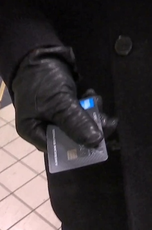 Otydligt på bilden, men tydligare på videon. Ser ut som ett Elite-kort, hoppas att han använde någon av värvningslänkarna här.Kristoffer Tamsons (trafikregionråd i Region Stockholm) kör Amex...