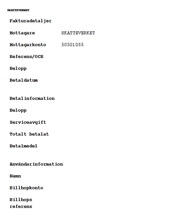 Till att börja med så känns inte sidan lika proffsig som Betalos, t e x inget inlogg med Bank-ID. Kvittot (.pdf) som kan skrivas ut efter betalningen ser dessutom att vara en suddig print-screen från ett textdokument (se bifogad bild, personlig information borttagen).