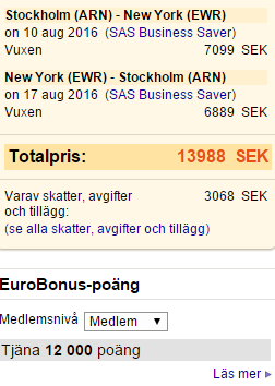 Kollade runt lite på resor i sommar och hittade följande möjligheter, ser ut att vara osedvanligt billigt för att vara SAS till USA i businessclass?