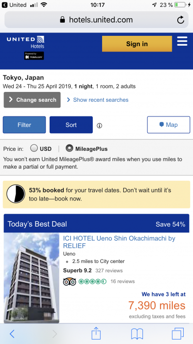 Jag använder t.ex. United.com hemsida för att söka flighter, och när jag söker efter hotell där finns det faktiskt ett riktigt bra utbud till bra "poäng priser".