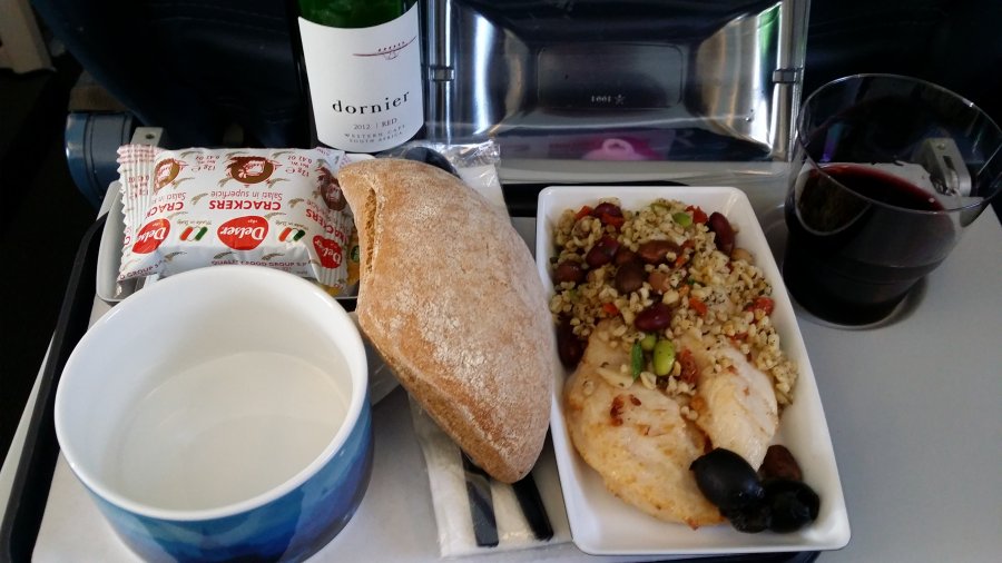 Maten som serverades var klart battre an vad jag forvantade mig, det var kyckling med bulgur och sallad. Det var ocksa Pretzels och kex med ost att ata.