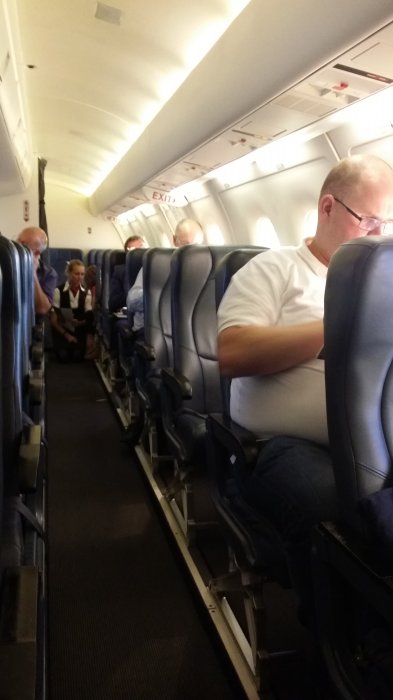 Vi var 15 totalt pa planet inclusive min familj som var 4, jag tror det fanns 30-40 platser pa planet. Direkt vid start sa slacktes lamporna som vanligt, denna underbara flygvardinna var genast frame vid mina barn (som satt pa rad 2, jag och fru trekker satt pa rad 3) och tande en lampa i taket. Efter start sa var det dags for servering, flygvardinnan kom till mig forst och fragade vad hon fick servera mina barn, och efter det hade hon en lang konversation med dom om vad dom ville dricka. Val till mig och fru gick det fort da jag tog en flaska rott (minns ej vad fru trekker tog).