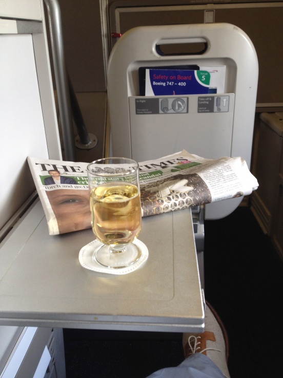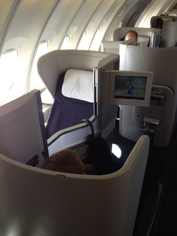 I BAs business så är ju, som ni säkert redan vet, stolarna placerade åt båda håll och då jag hade fönsterplatsen så fick jag alltså flyga baklänges. En något udda upplevelse, men ganska häftigt att ha testat. Kändes såklart mest speciellt vid start och landning.