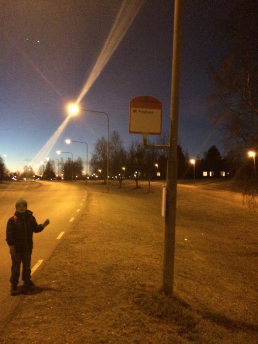 6:45 stod vi vid flygbusshållplatsen och väntade.