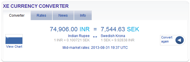 Pris: 65.000 INR + skatter ca 9.600 INR och uppåt, totalt ca 8.400 SEK inkl. skatter