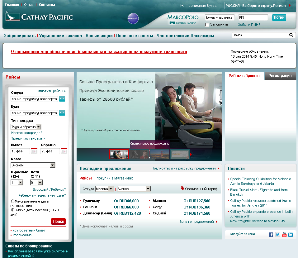 Routing: Moskva-(CX)-Hong Kong-(CX/KA)-Beijing/Shanghai/Guangzhou