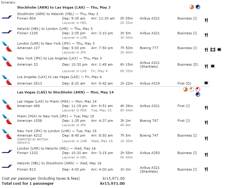 • Boston, Chicago, Las Vegas: 11.176 SEK