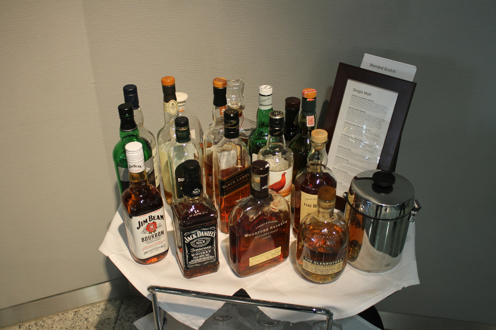 Nu syftar jag ju mer på vad en businesslounge på en halvstor flygplats rimligtvis kan förväntas ta in (snarare än mina egna personliga preferenser). Och allt bortom Famous Grouse, Red/Black Label, Grants och Ballantines (som man finner i lounger i tid och otid) ser i alla fall jag som ett steg upp.