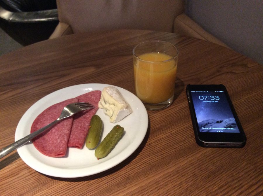 Star Alliance loungen på CDG, nu väntar jag på SK574 till Arlanda på plats hör och häpna 2C bara två rader plus i dag, Cola Zero på tapp så det får bli juice i stället.