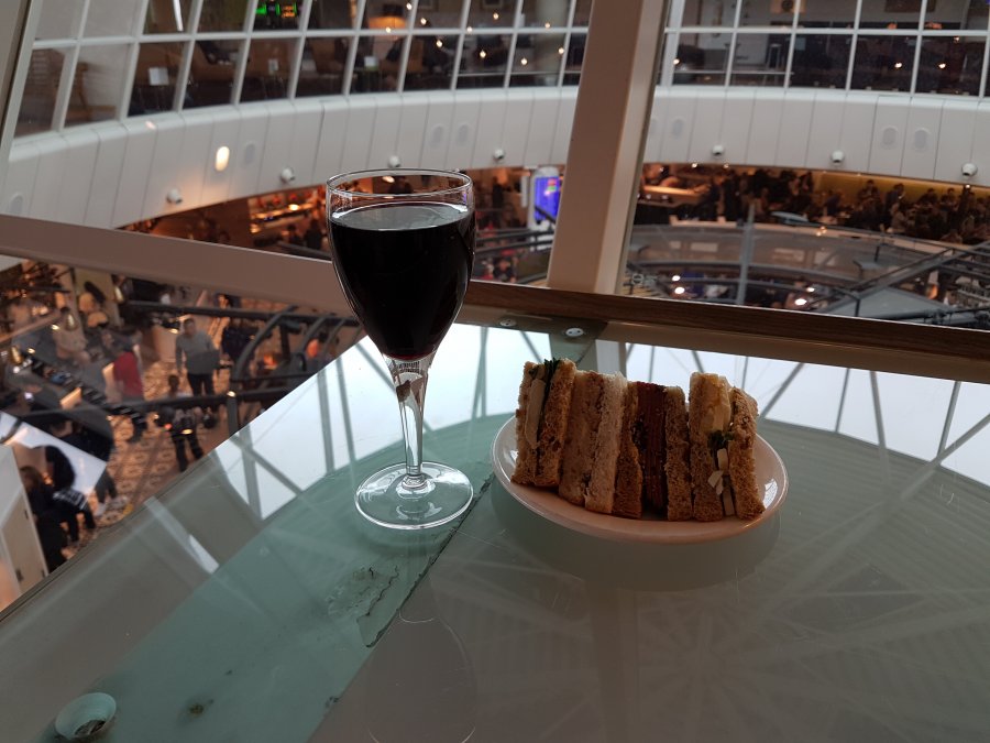 Sas guld på T5. Lugnt. Pulled pork. Tomatsoppa samt olika ostar med kex.