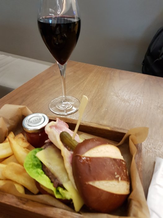 Dagens tredje lunch (efter fyra frukostar), klart nerköp från galleries first och ombord ba flighten. Börjar bli lite segt efter starten 04:00 imorse, men tränar inför Austin..... LH2503 till MUC om ca 2 timmar.