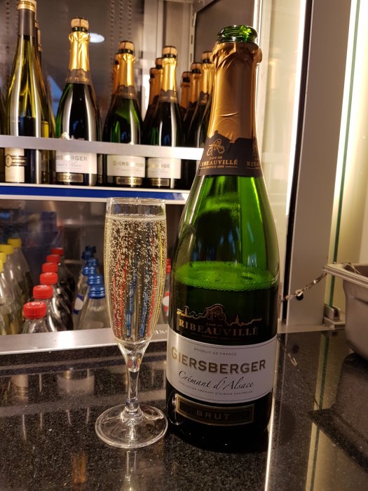 Champange som välkomstdrink på CA805 från Shanghai till Bangkok i en A321.