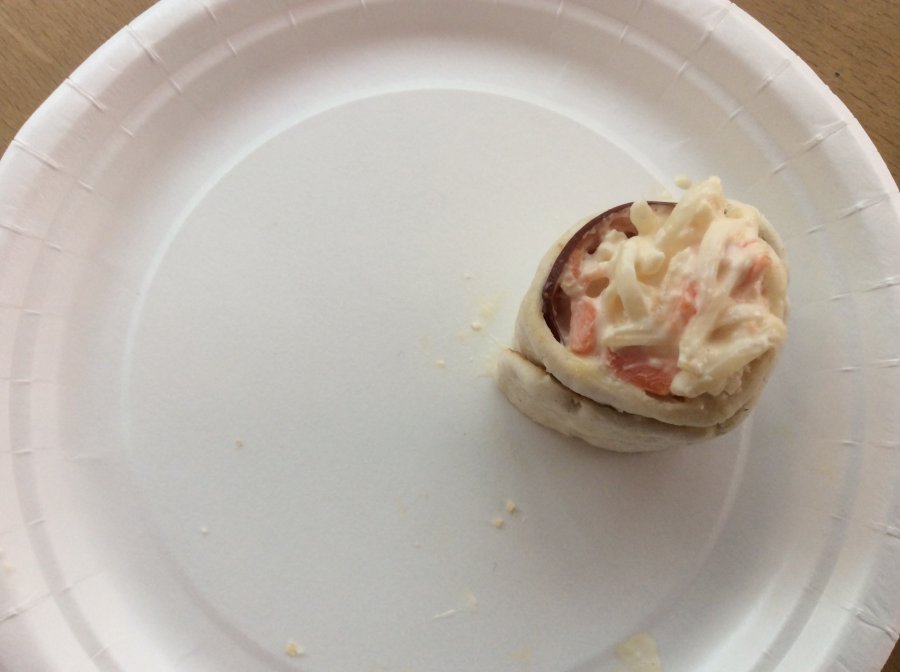 Här serveras det wraps med rivna morötter ,selleri och skinka.