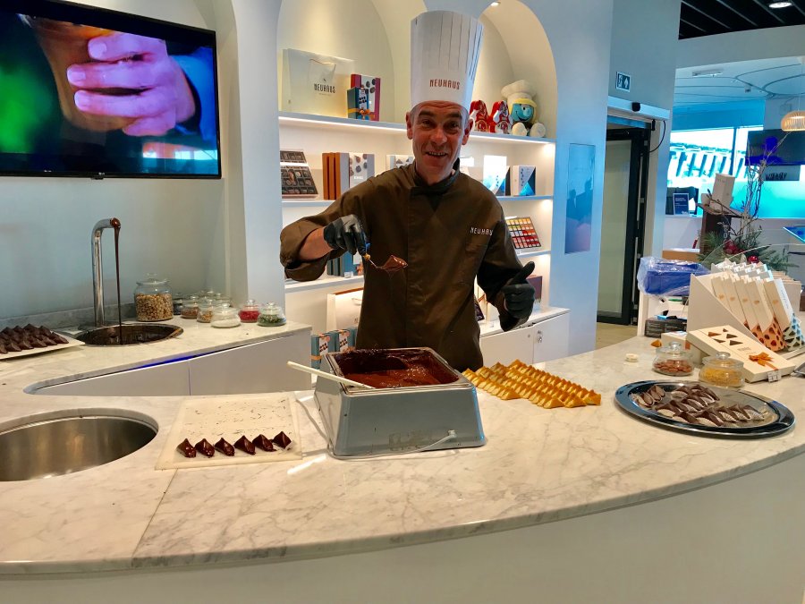 Fick en Smurfchoklad från en kille på Neuhaus mellan ingångarna.Några praliner?