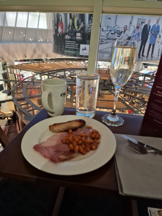 Jag drog till med en vegetarisk rogan josh och ett glas chilenskt tjut från 2017. Jag har en stund på mig innan det är dags att gå till gate så det blir nog fler beställningar vad det lider.