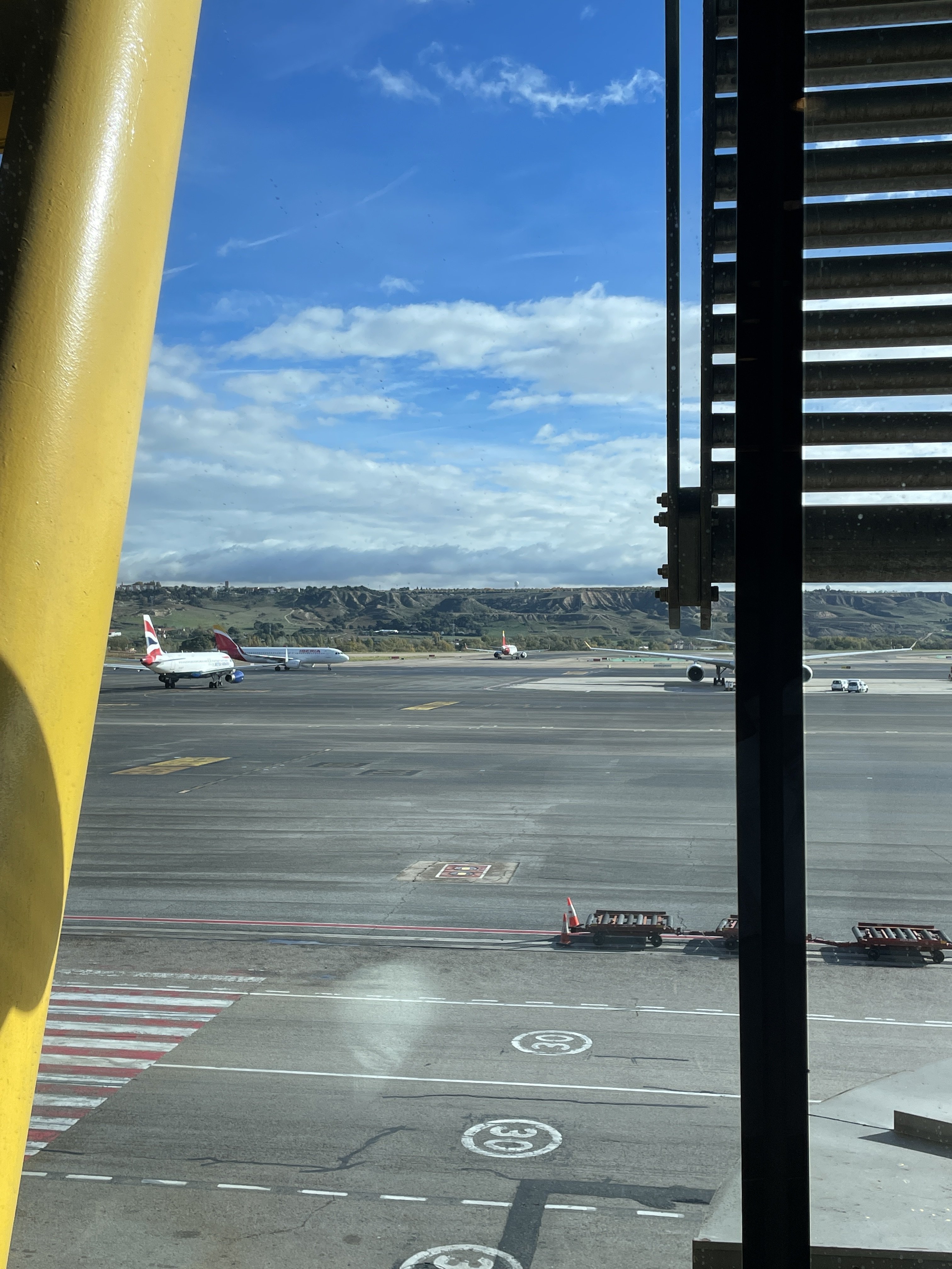 Morgonhälsningar från VIP lounge Iberia Madrid T4S påväg ner till Santo Domingo med deras A330. Grymt bra mat och loungen är väldigt fräsch, jag är so far överraskad och imponerad! Att man dessutom får denna frukostvy är svårslagen! Full fart här på förmiddagen.