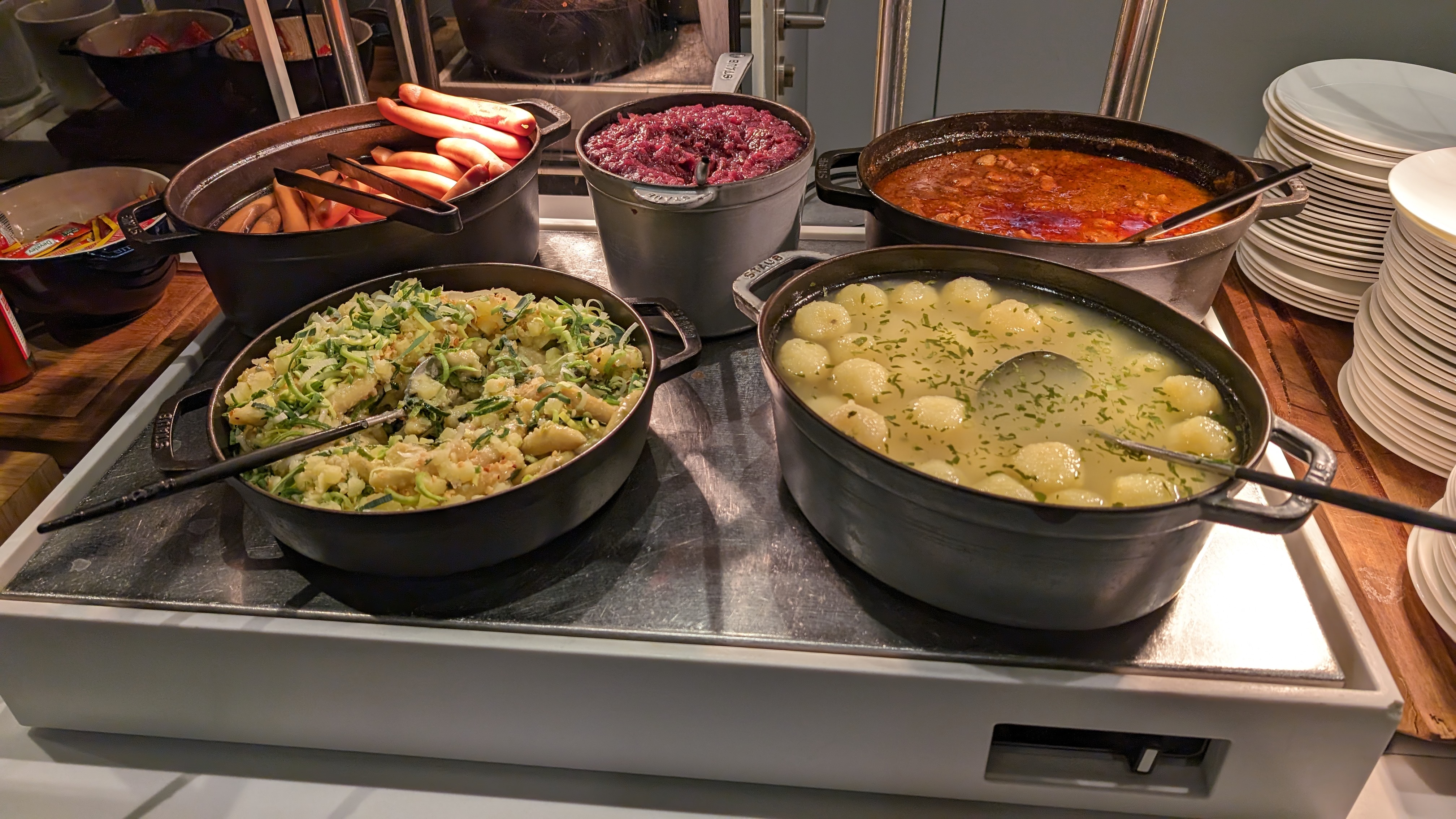 Nästan julbord i Senator lounge FRA vid A gates... I alla fall lite rödkål och korv.Trevligt med julbord i guldloungen på Arlanda!