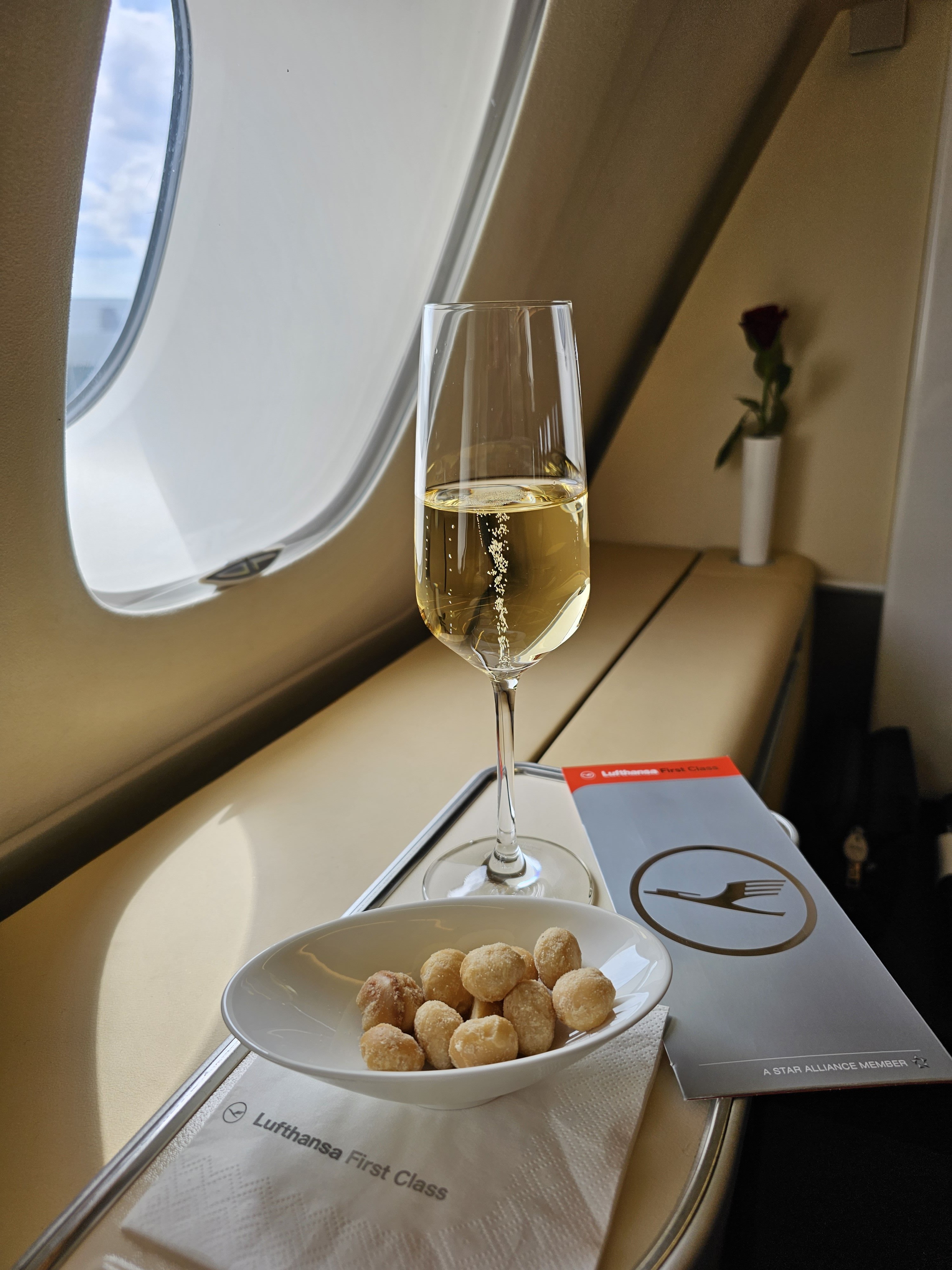 Bemanad bar som är stängd. Men finns gott om fika. Piper-Heidsieck Essentiel står framme.