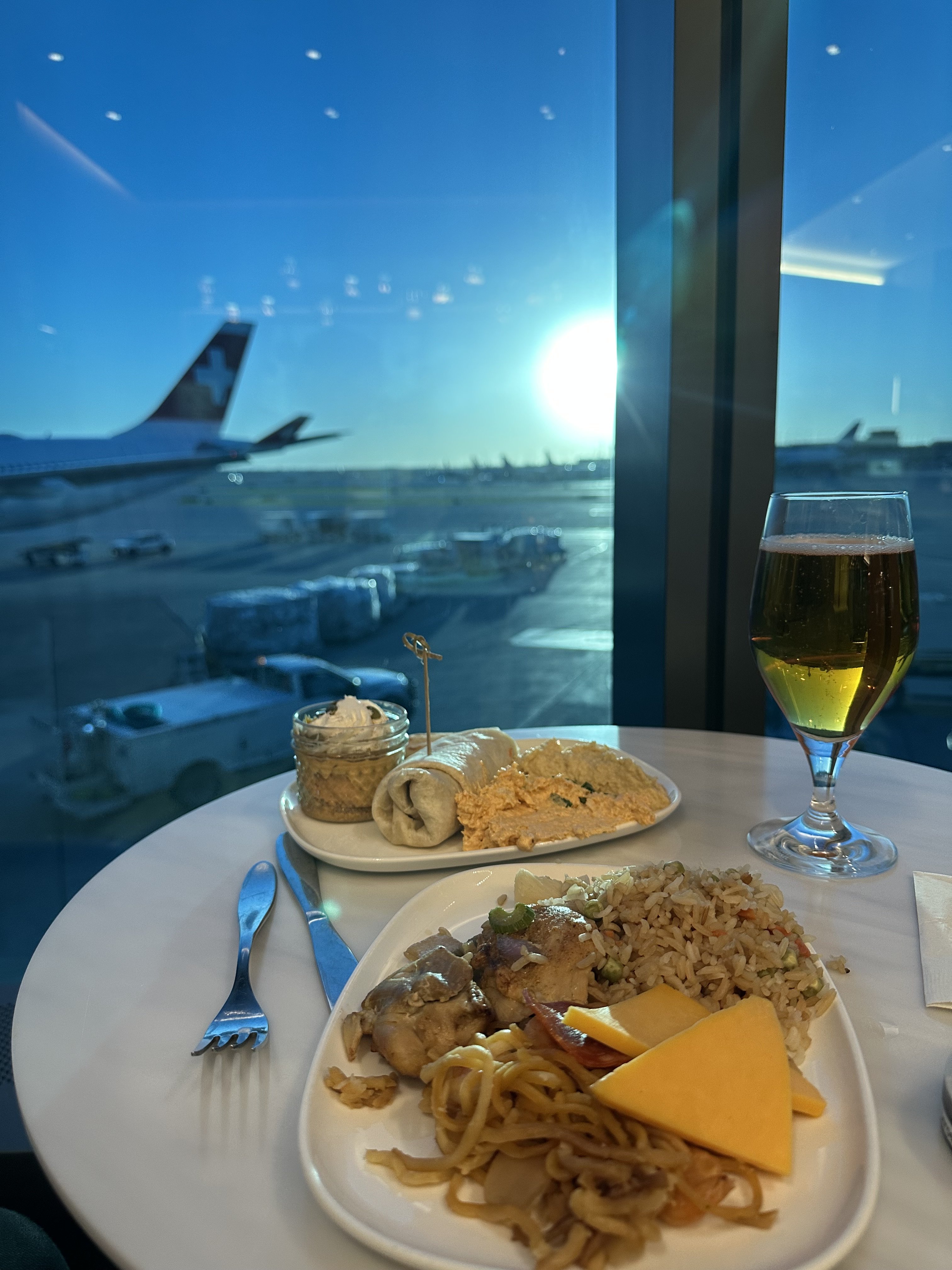 Godkväll från Delta Sky Club lounge ORD. Inte Polaris men stor, riktigt fräsch, bra käk och öl (Goose Island på fat). Ljusår bättre än SAS loungen.