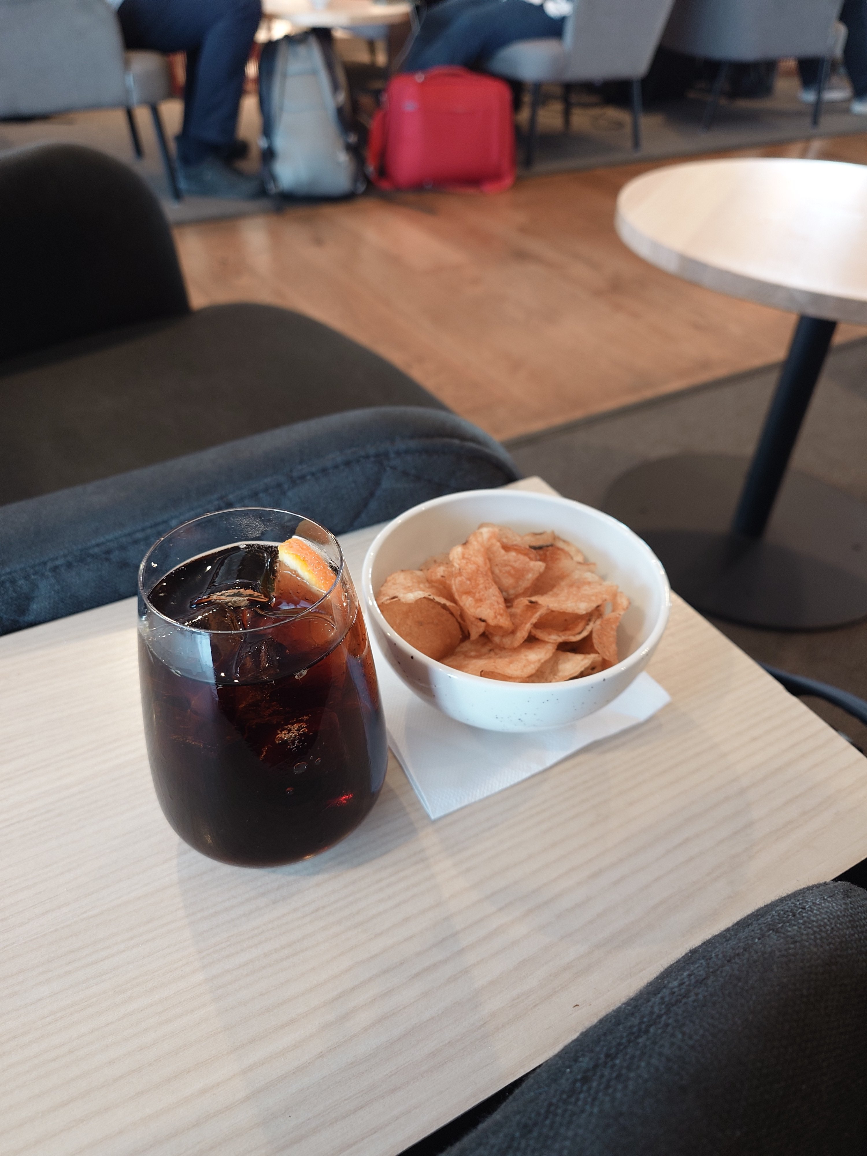 Stopover I Senator B på Frankfurt. En timme sent ut från Arlanda pga fellastad hund, men bara en dryg halvtimme sent in på Frankfurt. Vissa fick springa - jag har gott om tid och ska nog hinna med både kaffe från barista och något bra fråm baren senare....