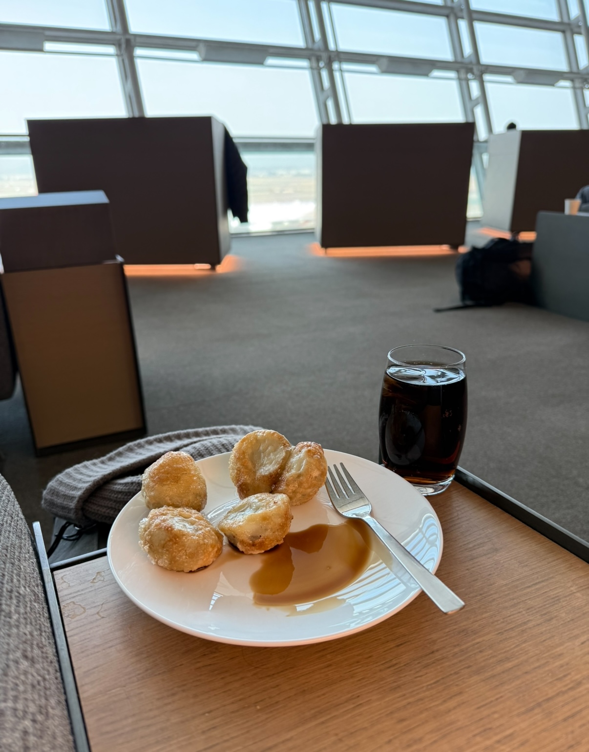 Va rätt dåligt utbud på käk för sambon så slevade bara i mig krubbet så drog vi direkt till Asiana’s East lounge närmast gaten!